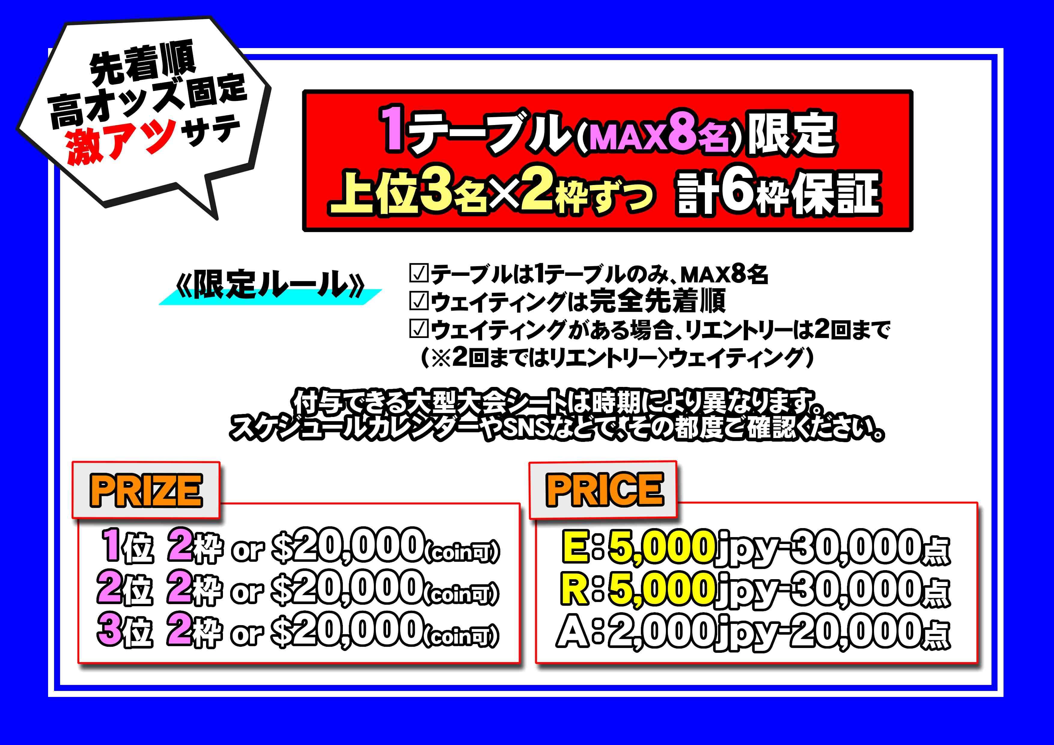 ※初回エントリー無料のトーナメントに関しては「店内入場料無料」対象外です💦
