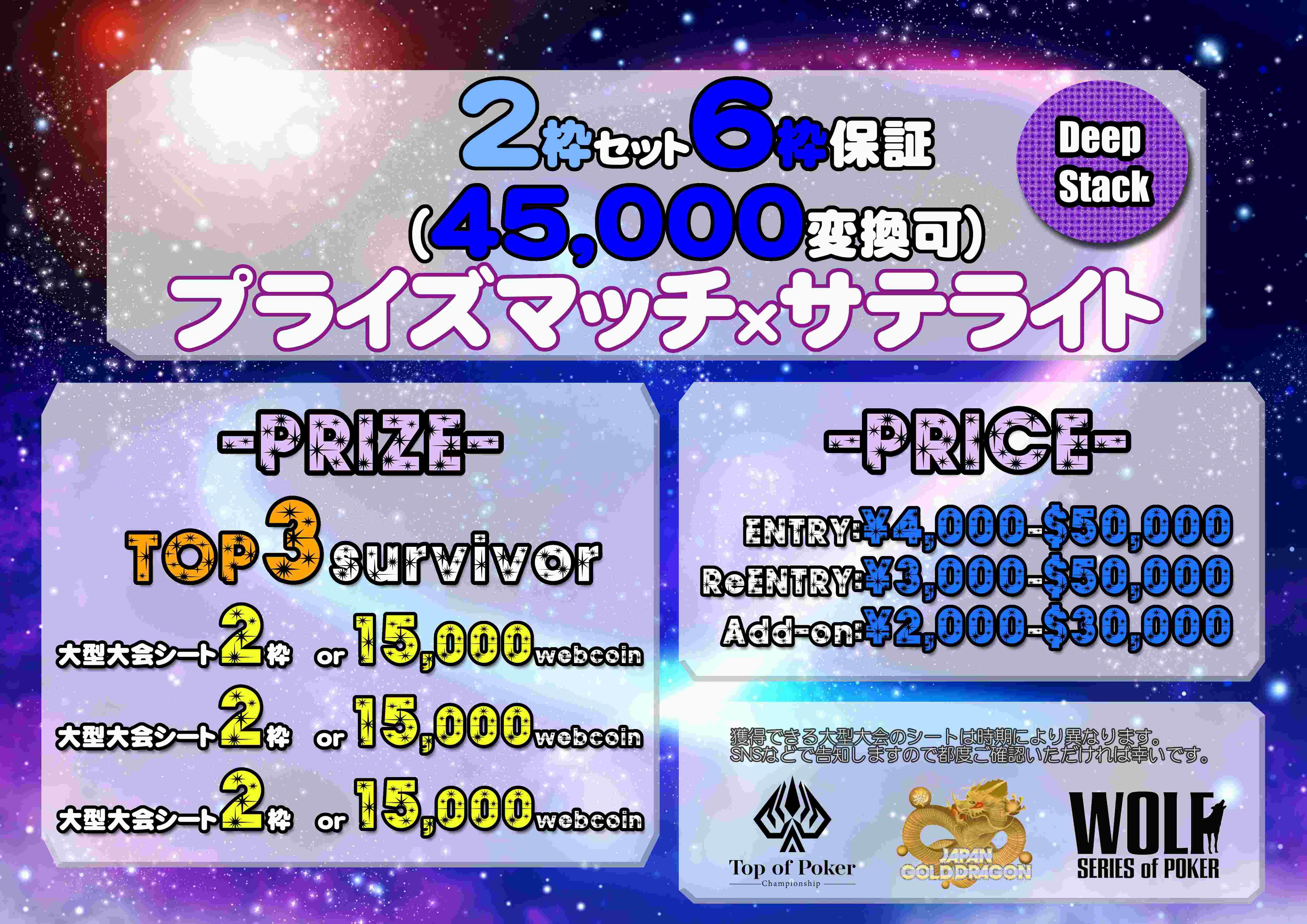 5万点持ちのディープスタックにてサテライトを楽しめます🔥